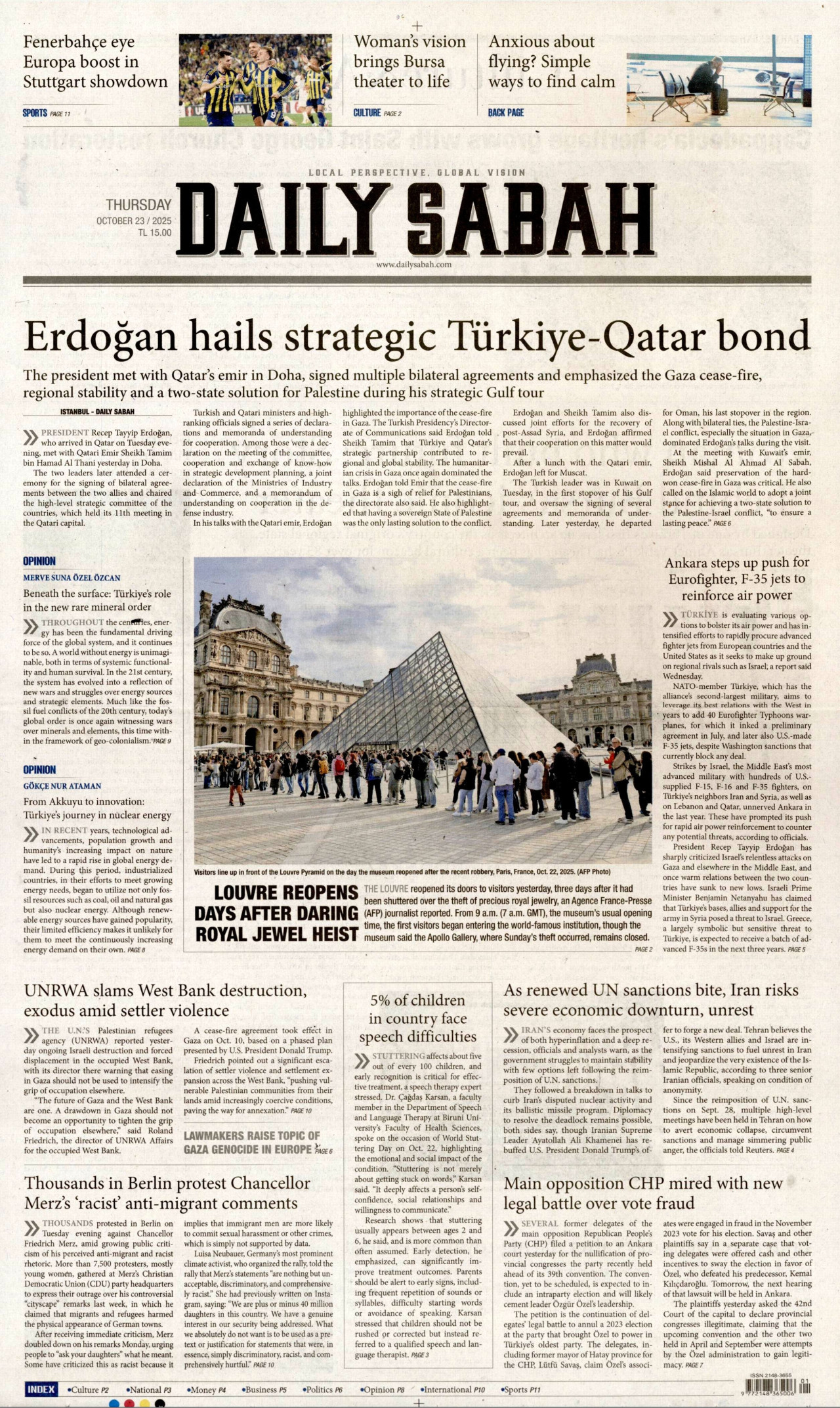 DAİLY SABAH Gazetesi 23 Ekim 2025, Perşembe Günü Manşeti
