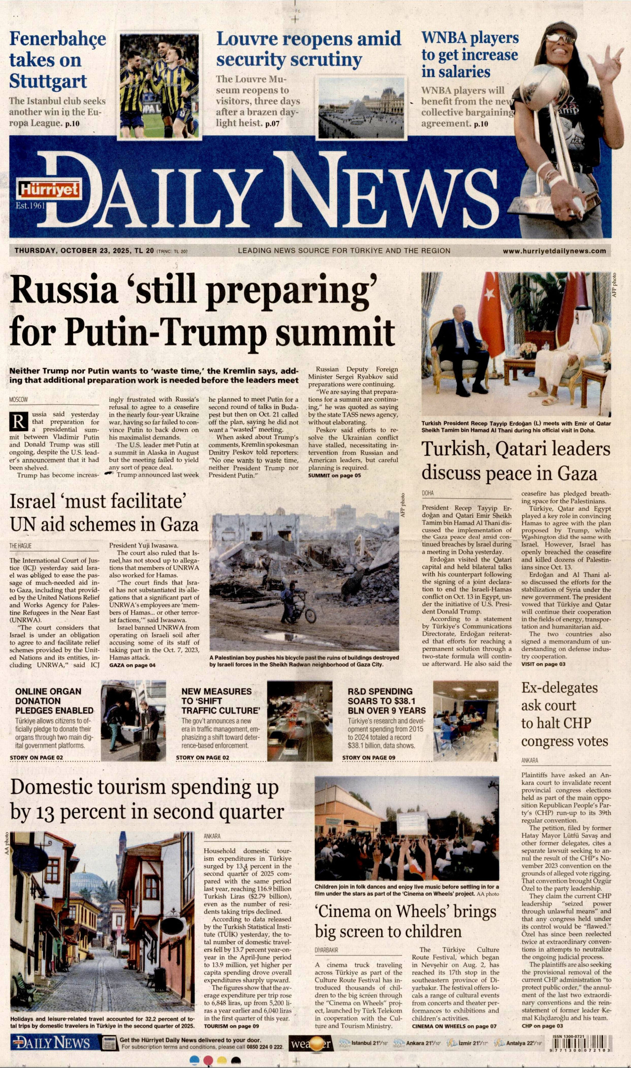 HÜRRİYET DAİLY NEWS Gazetesi 23 Ekim 2025, Perşembe Günü Manşeti