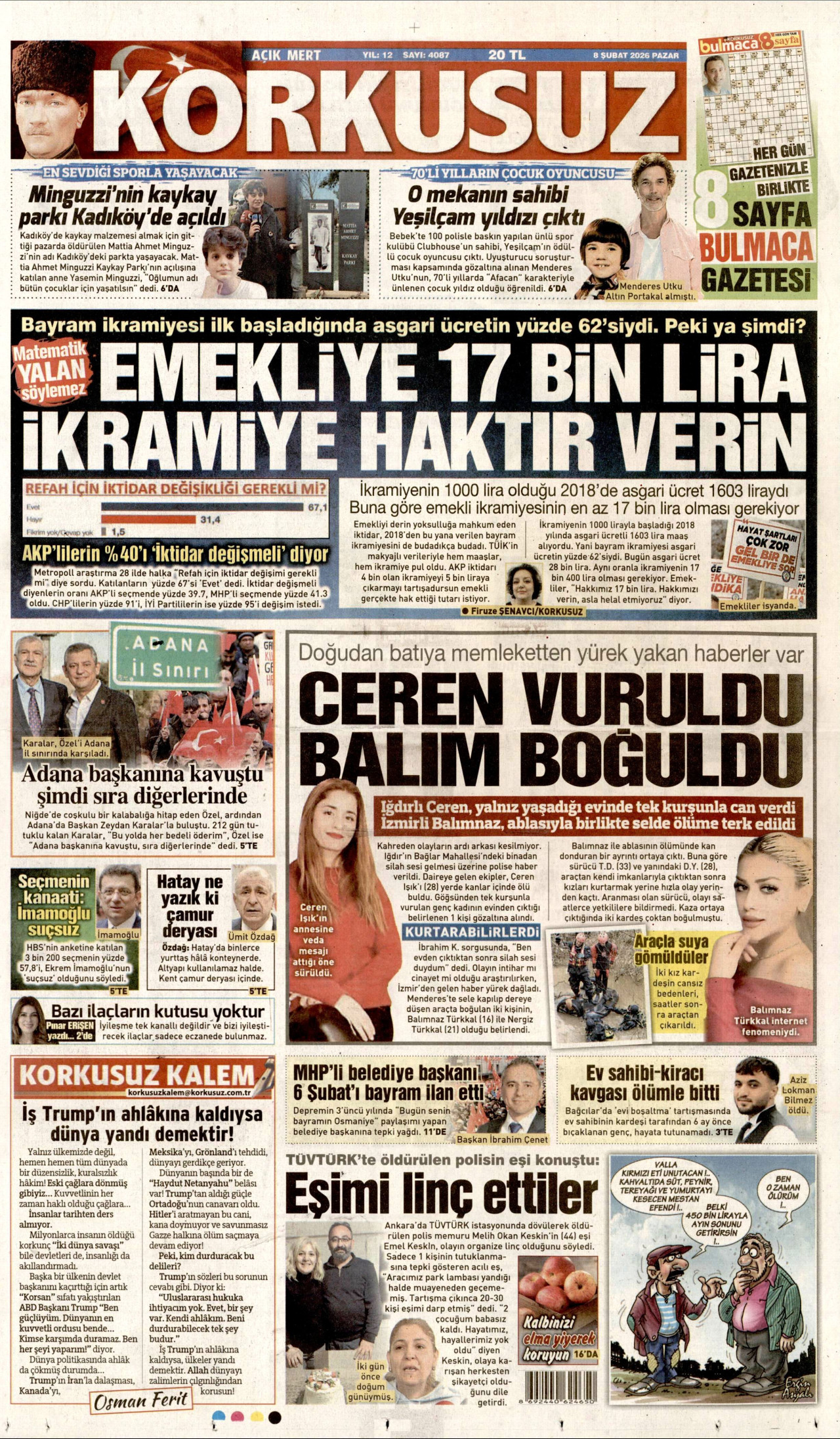 KORKUSUZ Gazetesi 08 Şubat 2026, Pazar Günü Manşeti